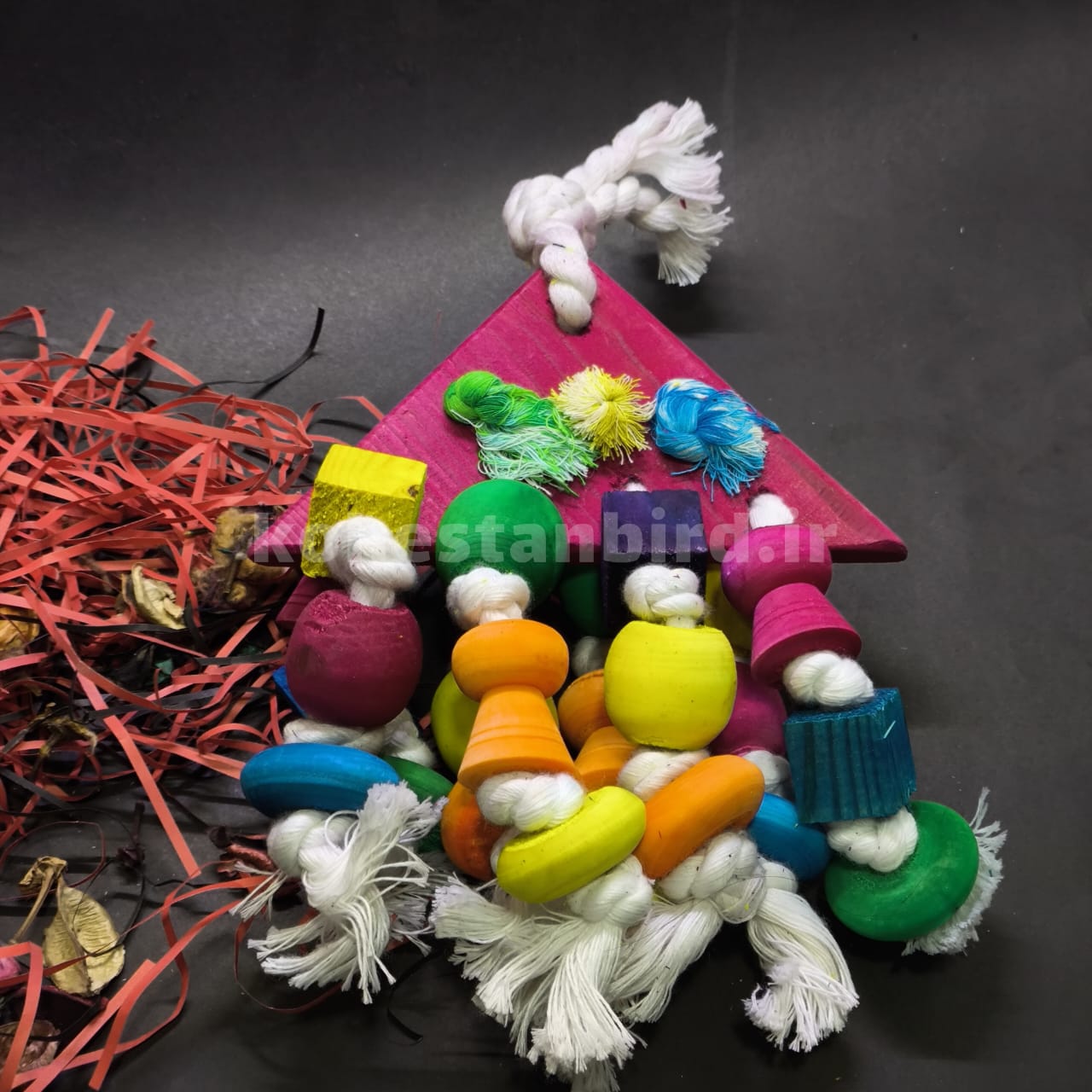 پرنده میتونه با آویزها بازی کنه، نوک بزنه و سرگرم بمونه، و با قلاب بالایی هم خیلی راحت داخل قفس نصب میشه؛ یه اسباببازیه خوشگل و سرگرمکننده.